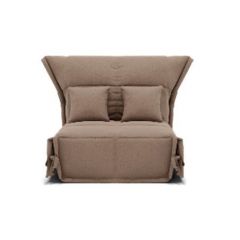 Маленький прямой диван-кровать без подлокотников, с декоративными подушками в комплекте.