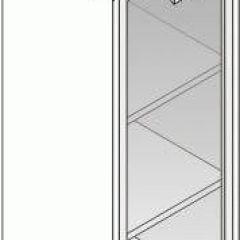 Топ из ЛДСП 44 мм., полки из ЛДСП 16 мм, остальные элементы из ЛДСП 22 мм., кромка ПВХ 2 мм, регулируемые опоры высотой 100 мм. Тонированное стекло в рамке МДФ, цвет серебро.